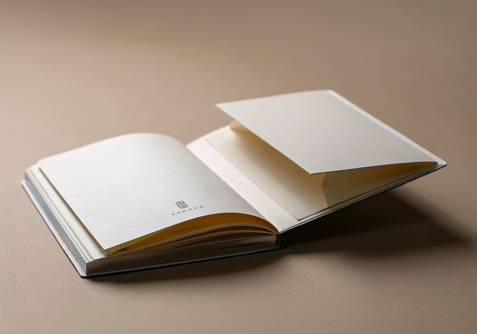 Courbé à exactement 5°, le bord supérieur arrondi rend le carnet Takafa plus facile à ouvrir, à tenir et à utiliser au quotidien pour écrire.