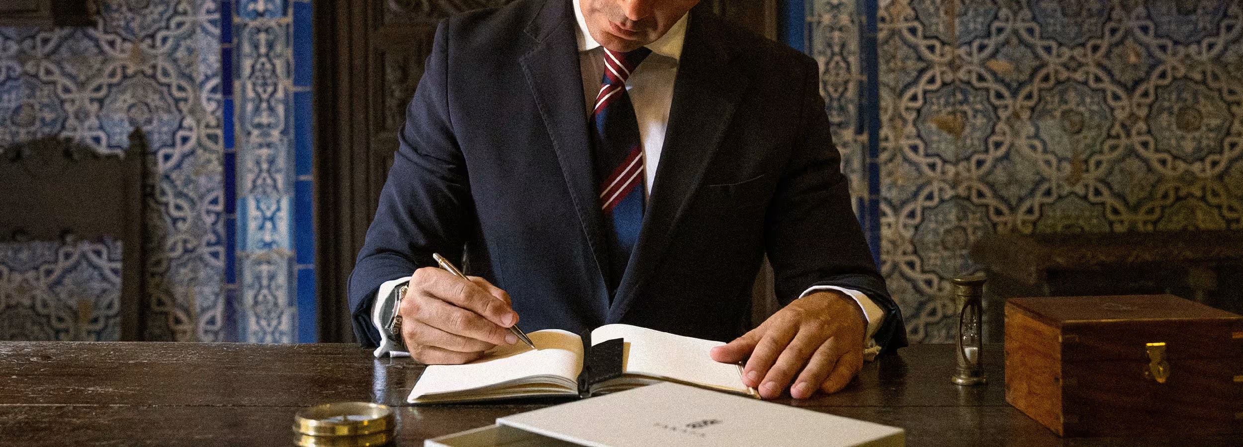 Notre carnet est recouvert d'un cuir lisse Bos Taurus embossé de l’emblème Takafa. Un matériau noble choisi pour vieillir avec élégance et raffinement. Conçu pour vous offrir une parenthèse exclusive hors du monde numérique.