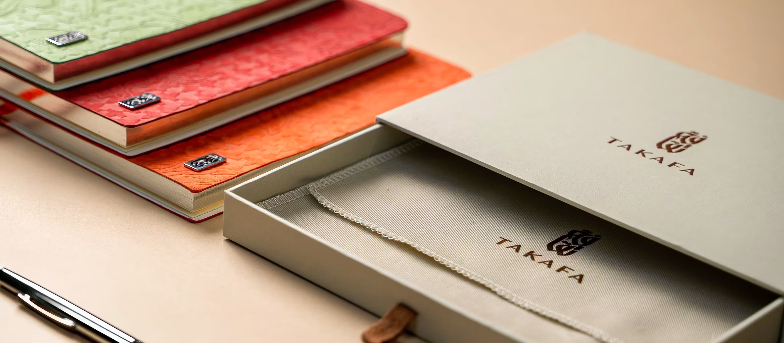 Qu'il soit offert comme cadeau de luxe pour inspirer la créativité d'un être cher ou conservé comme journal de bord, le carnet de notes Takafa est le symbole d'une intention, un serment d'écriture, de création et de souvenir.
